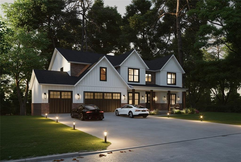 From the moment you arrive, the architectural presence sets the tone clean lines, balanced gables, and a welcoming covered entry that invites you inside.