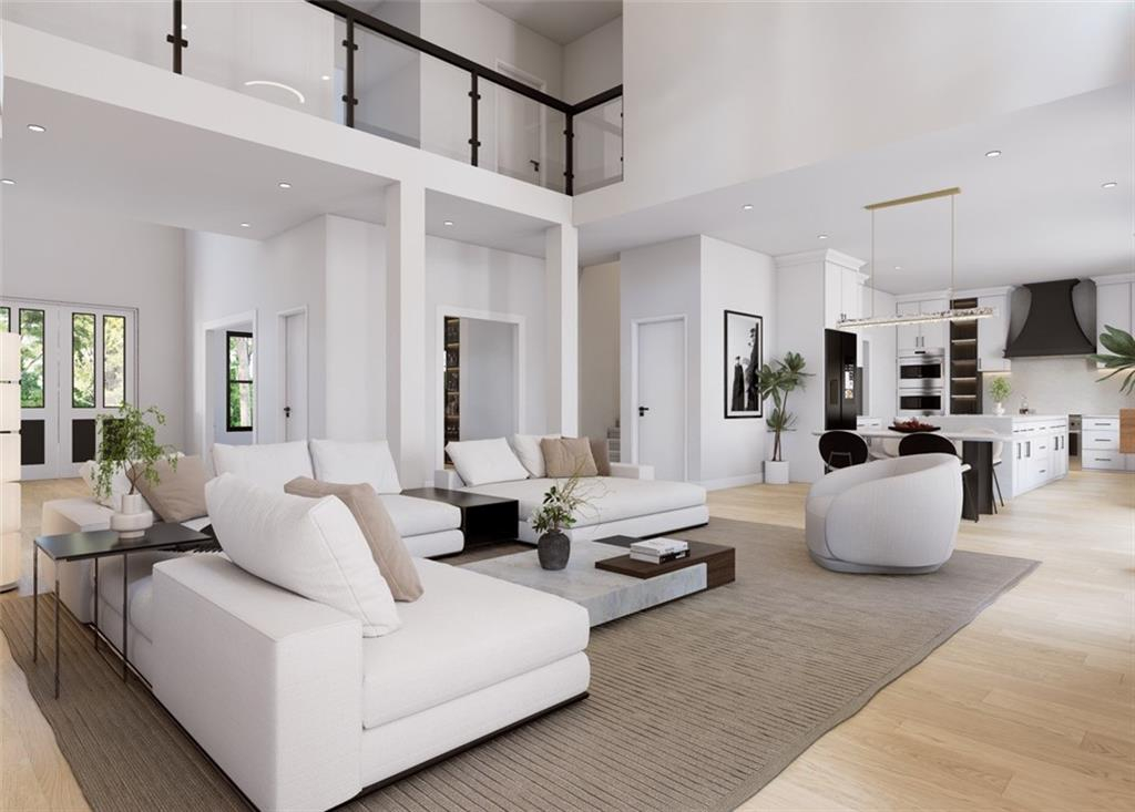 Upstairs, retreat to a luxurious owner’s suite designed as a true sanctuary—complete with generous space, spa-style bath, and walk-in closets. Additional bedrooms are thoughtfully placed, offering comfort and privacy, while the open view below to the great room enhances the home’s airy, grand feel.