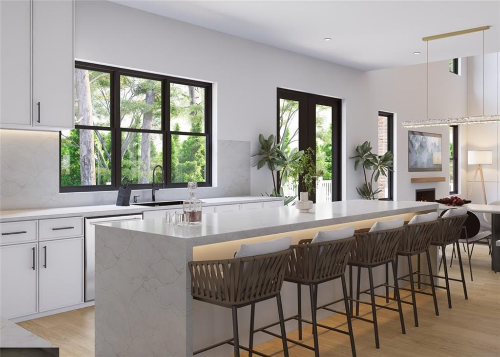 At the heart of the home is a chef-inspired kitchen designed for both connection and function—featuring an oversized island, seamless flow into the casual dining area, and clear sightlines into the great room. Whether you’re hosting or enjoying a quiet evening, everything feels connected. Step outside onto the expansive rear deck, where mornings begin with coffee overlooking nature and evenings end with effortless entertaining.